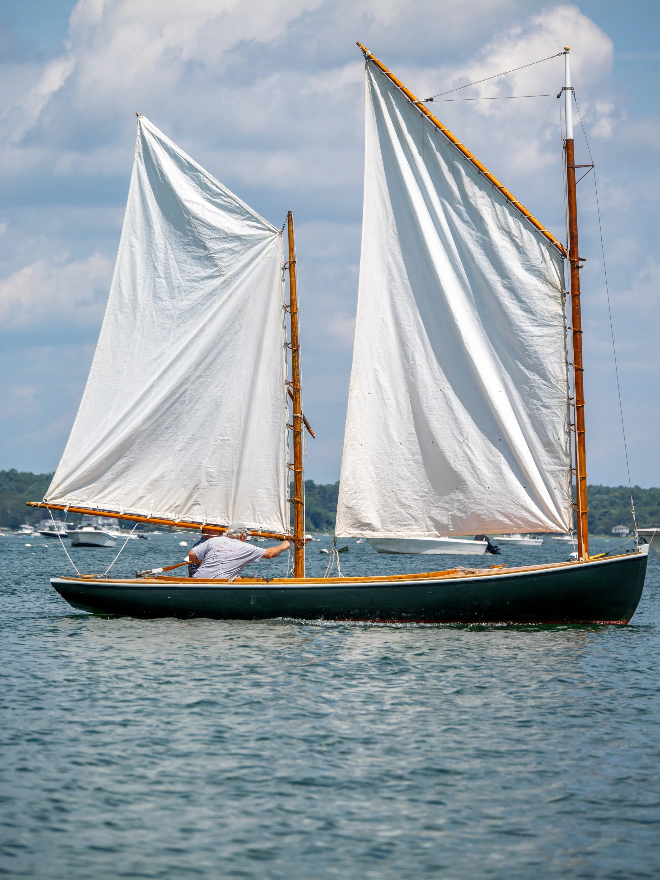 Background Image — The Ransom, a 1904 Kingston lobster boat racing in the Shiverick Regatta (2024). The Ransom is the same design that is currently being built from scratch at the Jones River Landing boat shop.